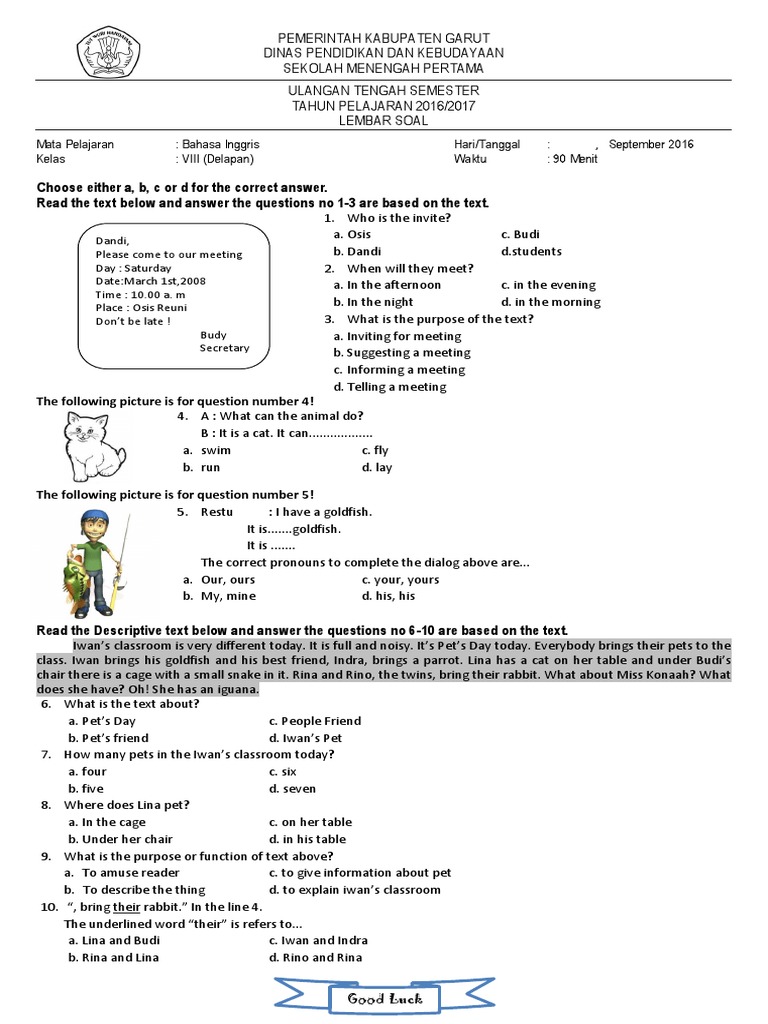 Soal Uts 15 16 Smp English Pdf Organisms Nature